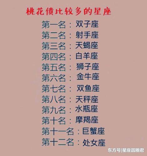 天秤座天秤座的人非常追求平衡和谐,他们有相对较多的桃花。他们善于处理各种人际关系,通常更喜欢在爱上他们的伴侣之前和他们的伴侣交朋友,这也是他们有更多桃花的原因之一。