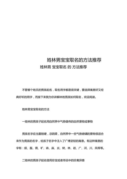 在给婴儿取名时,以林为姓的父母可以参考上述内容,从汉字的角度命名,选择具有历史遗产和深刻意义的婴儿名称,让孩子有一个历史名称,但也让婴儿成为一个有自己文化背景的人,让自己与众不同。