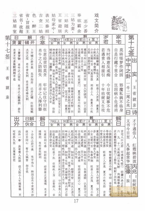 佛主灵签17的占卜方法为了进行佛教精神签名17的占卜方法,你需要准备一张60张卡片。占卜者必须有一个问题或愿望,并把它放在心里。在准备好的60张卡片中,摇晃和重组,然后随机抽出一张卡片。每张卡片都包含一个指导信息,占卜者可以通过解释这些信息来帮助理解问题或澄清他们的思想。