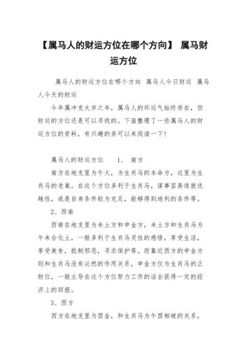 2016年属马的吉方2016年,属于马的人可以有很多吉祥的。根据传统的十二地支文化,2016年属于马的人位于陈宫。陈宫有许多富有的神。这种神可以帮助属于马的人取得成功。此外,陈宫还有哪位神——帝军,他让人感觉良好「风生水起,英雄豪杰之气」其作用,能促使属马的人取得成就,获得荣誉。