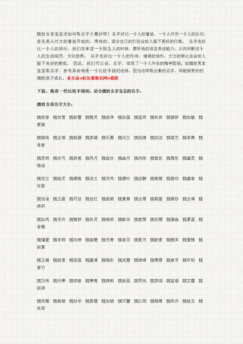 男孩:魏欣豪~魏嘉轩~魏浩南~魏新宇~魏书航~魏文波~魏东旭~魏俊熙~魏伟奇~魏慕哲~魏乐哲~魏嘉宇~魏靖尧~魏锦西~女孩:魏雨涵~魏雨欣~魏嘉宁~魏心怡~魏曼遥~魏梦涵~魏紫文~魏紫文~魏紫文~魏紫欣~魏紫欣~魏紫欣~魏紫欣~祝您的宝宝聪明、美丽、活泼、可爱、健康、快乐!