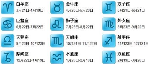 根据阳历出生日期计算星座,农历要到出生年份,然后转换为阳历日期,十二星座具体日期如下: