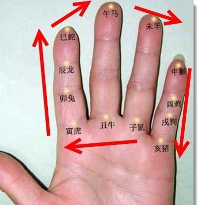 计算方法包括左手和右手。就我个人而言,我认为左手很容易计算。伸出你的左手掌,从无名指的根开始,依次是老鼠、丑牛、尹虎、毛兔、陈龙、三蛇、马、未羊、申猴、酉鸡、徐狗和海猪。