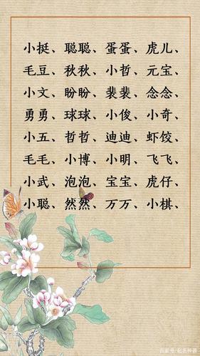 虎年宝宝洋气好听的小名大全:小名是宝宝在家里用的爱名,有的地方叫乳名或者奶名。父母给宝宝起昵称的目的是简单、有爱、顺口。昵称的形式也比较多样化,其中叠字(叠音)昵称常见,如乐乐、明明、萌萌等。还有一些小字开头的小名,如:小花、小桃、小美等。因为昵称不需要户口,也没有硬性规定,只要父母开心,怎么昵称都可以