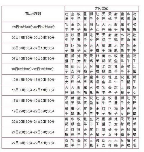 以下是星座日期划分表。你可以通过比较阳历的生日来知道星座是什么。