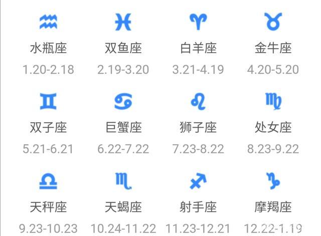 按阳历。共有12个:金牛座(Taurus)4月21日~5月20日双子座(Gemini)5月21日~6月20日巨蟹座(Cancer)6月21日~7月20日狮子座(Leo)7月21日~8月21日处女座(Virgo)8月22日~9月22日天秤座(Libra)9月23日~10月22日天蝎座(Scorpio)10月23日~11月22日射手座(Sagittarius)11月23日~12月20日摩羯座(Capricorn)12月21日~1月19日水瓶座(Aquarius)1月20日~2月18日双鱼座(Pisces)2月19日~3月20日白羊座(Aries)3月21日~4月20日