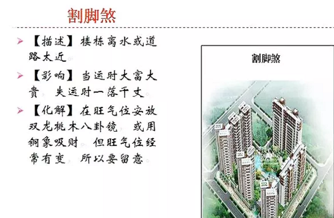 在风水学中,有一种不利的风水布局叫割脚煞,意思是建筑、住宅或坟墓的基础靠近河流、湖泊、海洋等水源,被水压迫,形成恶灵。
