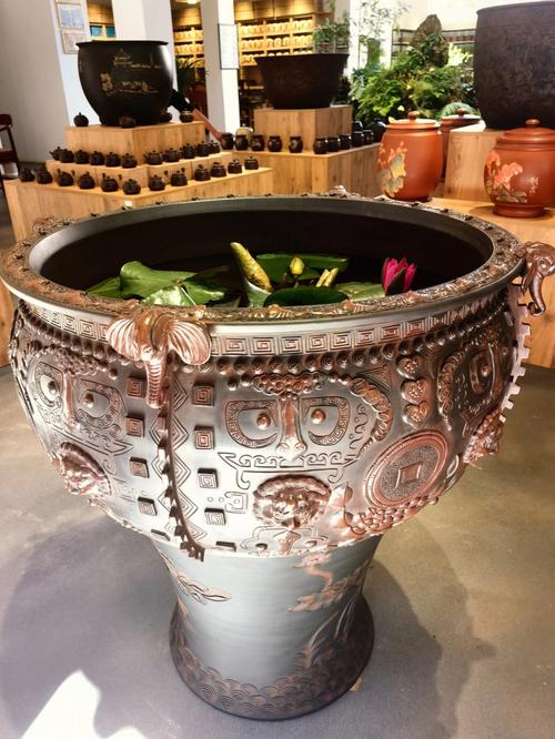 1、盆栽风水铜缸还可以装水,调节室内湿度。