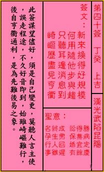 这是求子签:说你会有一个儿子,这个男孩的生活是非凡的,是真正的龙天子的生活,王子的生活!将来要么是一个大官员,要么是一个大老板!然而,他有着深厚的佛教命运,必须皈依佛教,否则即使他的生活很好,也不会实现。