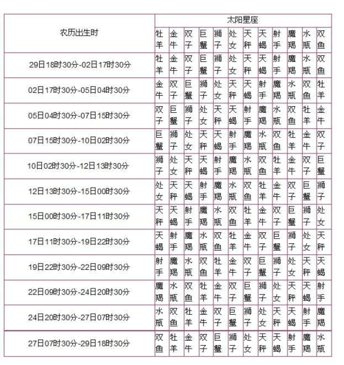 如果你使用阴历生日,每年的阴历日期和阳历日期是不同的,你必须把你出生的阴历转换成阳历。根据星座表进行比较。)