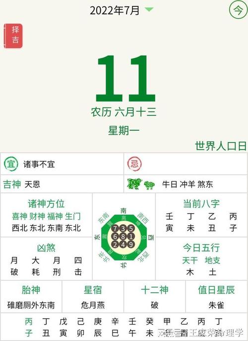 安照农历是黄道吉日。在过去的老年,无论家里发生什么事,建房、旅游、婚丧嫁娶,都要找个黄道吉日。
