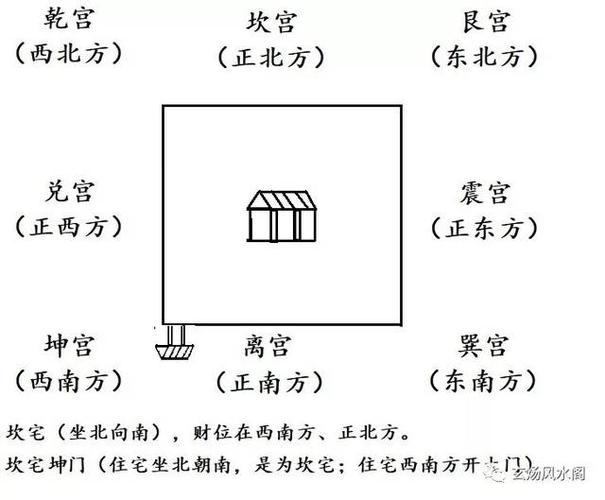 1、坐王、子、桂方坎宅(坐北向南)开门吉凶