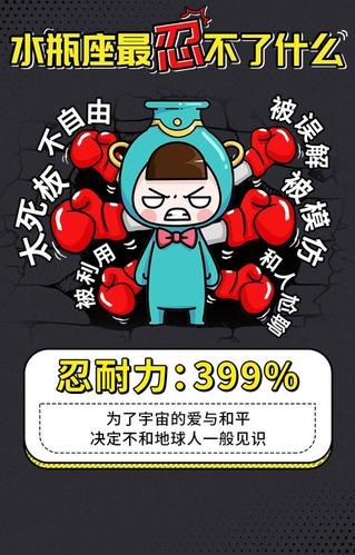 第四:水瓶座水瓶座的人偏执而独立。他们不会轻易妥协,但他们有强烈的正义感,会为自己的想法而奋斗。他们会长期保持客观的态度,不会因为别人的指责而动摇。即使面对挫折和失败,水瓶座也能耐心乐观。
