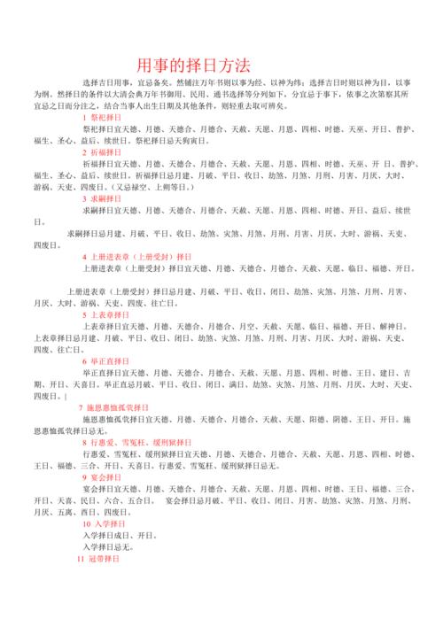 选择重要日子的方法选择重要日子的方法因人而异,但一般可以遵循以下步骤: