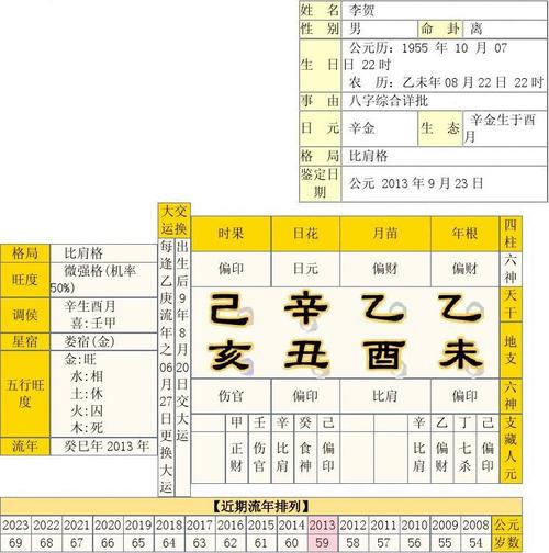 2.命运分析:通过八字命运盘中的吉凶、五行属性、宫位等信息,分析一个人的命运趋势。如果你命中了更多的金水,主人通常有丰富的财力,但也很容易受到情感的影响;如果你命中了更多的木火,主人通常事业有成,但也很容易过于冲动和非理性。