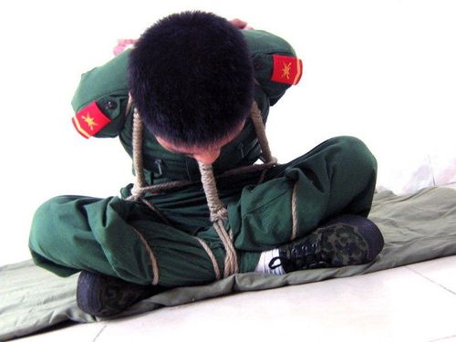 绳子捆绑俘虏的方式,你说押解捆绑主要是在我们押解人员较多的情况下使用的,可能与敌人相遇的环境相对较小。但收紧绑住手臂后,你不能绑住手腕。绳子的尾巴在脖子后面扣紧,打结。