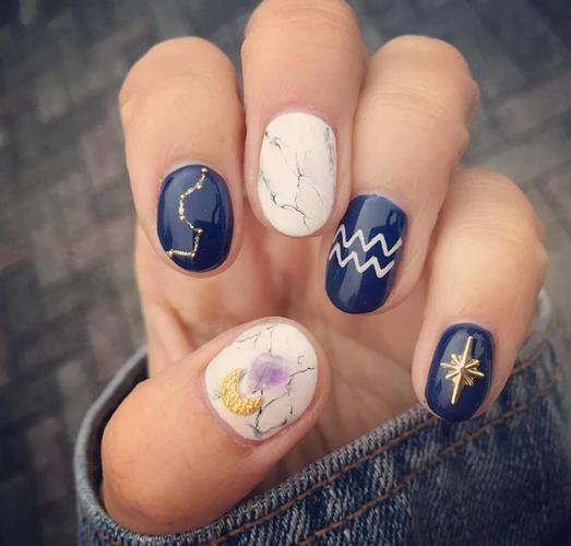 水瓶座具有独立精神的水瓶座女孩经常选择奇怪而新颖的图案来装饰她们的指甲,如科幻元素、动物图案等,这代表了她们尝试和创新的勇气。