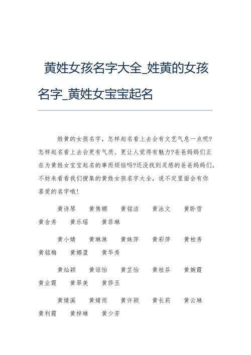 当一个婴儿出生时,给它起个好名字是非常重要的。一个好名字不仅能让孩子更容易被人际接受,还会对他的命运产生一定的影响。对于一个姓黄的父母来说,他们一定想给女儿起一个好听又吉祥的名字,尤其是2020年生肖是老鼠的那一年。