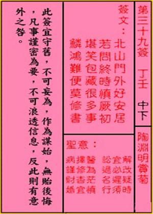 【圣意】讼已胜,莫再战。名已成,毋再问。婚可定,病自散。行人归,且安分。(“可”一本作“已”)