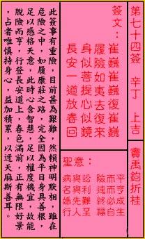 第七十七签,辛庚,中平。