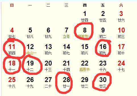 答:11月26日是好日子,阳历9号,星期六。66大顺。