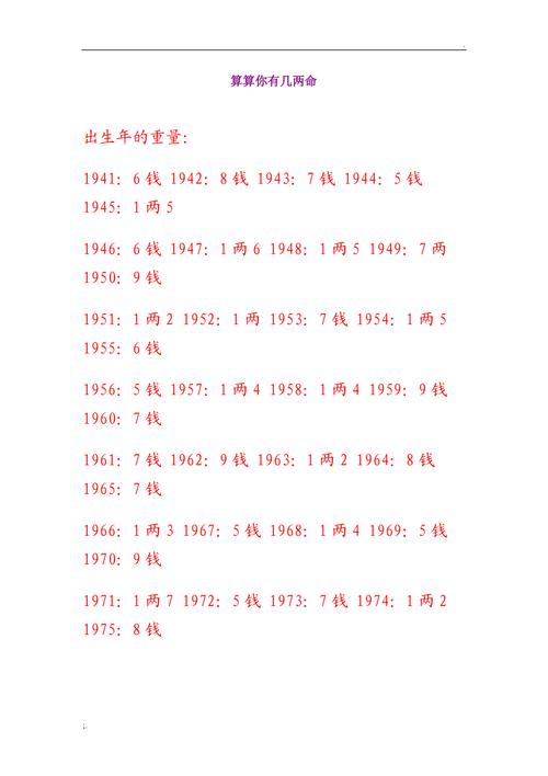 2020年几斤几两生肖对照表