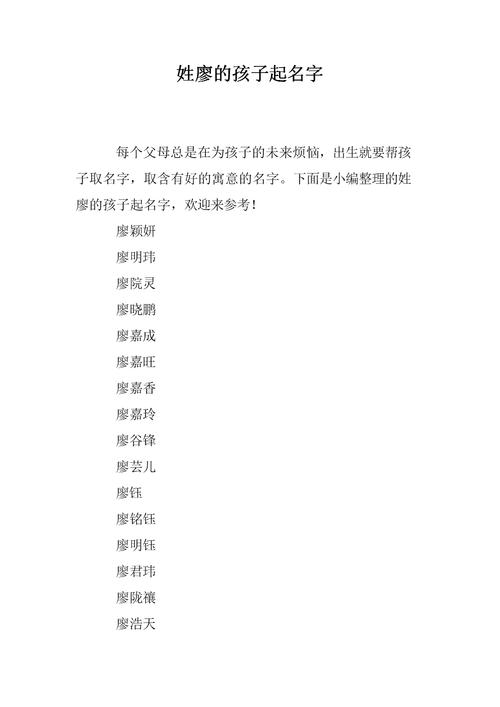 命名是每个父母都必须面对的挑战。一个好的名字不仅要有良好的意义和魅力,还要符合家庭和社会的文化背景和价值观。在中国,姓氏是一个非常重要的组成部分,因为它代表了家庭的血统和遗产。如果你的女婴姓廖,以下是受欢迎的命名方式之一。