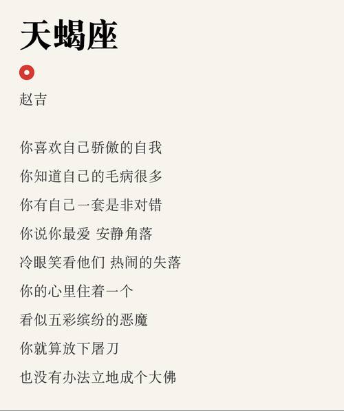 天蝎座天蝎座神秘而深刻,所以适合跳具有强烈情感和性感魅力的舞曲,如深色摇滚或电子音乐。这些舞曲不仅能满足天蝎座的舞蹈欲望,还能表达他们深刻的思想和情感。