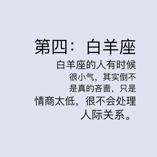 第七:白羊座白羊座的人通常非常热情,想要在人际关系中得到更多的满足。他们喜欢为自己花钱,并经常展示自己的消费能力。但白羊座的人通常不愿意为别人付费,他们认为他们只是过着更好的生活,不愿意花钱给别人。