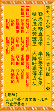 观音灵签第九十九签:不接先忧都是患,莫为伊鸿意不宽。若抛万忧投明月,明月照人疑似天。