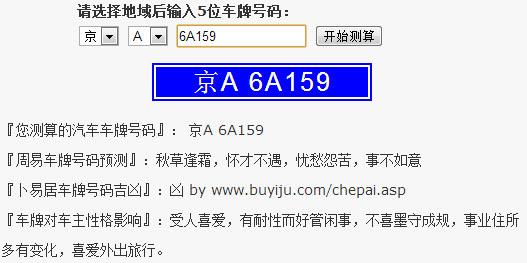 当然,如果你只是想查询车牌号是否有好坏,建议你使用非常亚洲的网站,因为它的功能更完善,服务更方便,吉祥传记 等待网站,虽然提供专业的吉凶查询服务,但如果只是简单的查询车牌号吉凶,显然比非常亚洲这样的网站性价比低很多。