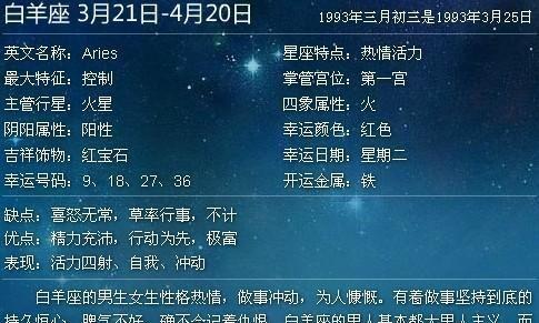 四月初四是白羊座。白羊座是黄道星座之一。虽然白羊座不引人注目,但它在古希腊很有名,因为古代的春分位于白羊座。现在,由于年龄差异,春分已经转移到双鱼座。白羊座在日本被称为牡羊座。受其影响,牡羊座也存在于中国和中国。