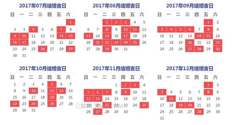 2017下半年结婚吉日一览表