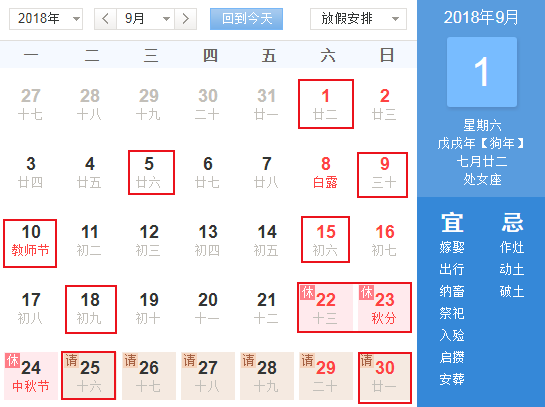 2019结婚黄道吉日一览表九月