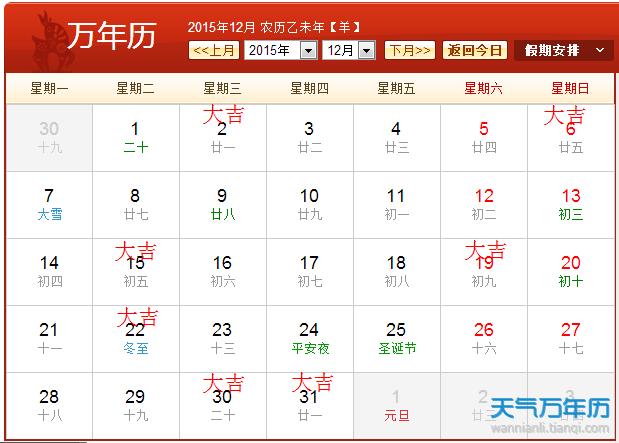 2010年农历十二月初二不是黄道吉日。2010年农历十二月初二那天只宜:解除扫舍馀事勿取;诸事不宜。农历2010庚寅年腊月初二黄历公历:2011年1月5日星期三摩羯座农历:2010年腊月(大)初二胎神占方:碓磨炉外东南岁次:庚寅年戊子月庚申日彭祖百忌:庚不经络织机虚张申不安床鬼祟入房五行:石榴木成执位吉神宜趋:母仓三合天喜天医玉宇除神鸣犬青龙冲煞:冲虎(甲寅)煞南凶神宜忌:九焦九坎土府大煞五离八专宜:解除扫舍馀事勿取忌:诸事不宜