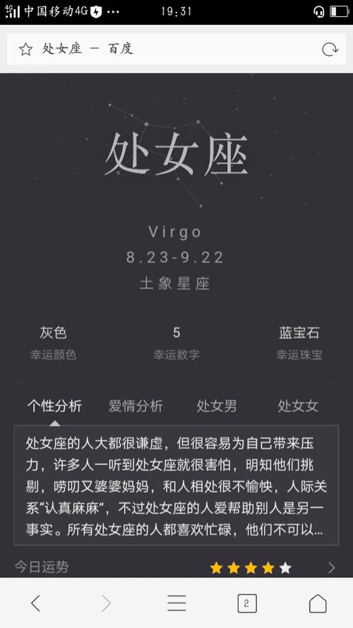占星学中的处女座占星术中的处女座是一个非常追求的星座,是美丽的象征。处女座的人更感性,对自己更敏感,更容易受伤。处女座的人也很体贴,非常信任信任的人。而且处女座追求的特点在社会上基本达成了共识,以前遇到追求的人都会说你女座。这也是过去网络流行语之一,的处女座。现在很少有人会这么说。