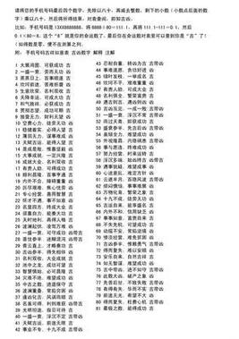 2. 基于音韵的判断这种方法是根据手机号码中数字所代表的发音来判断它的好坏。例如,中国南方的一些地区的人认为,手机号码必须包含7或9个数字,因为在南方,数字7和“开始”、“吉”等词有类似的音韵,而数字9和“长”、“久”等词语也有类似的音韵,有“前途无限,长久”的好形象。