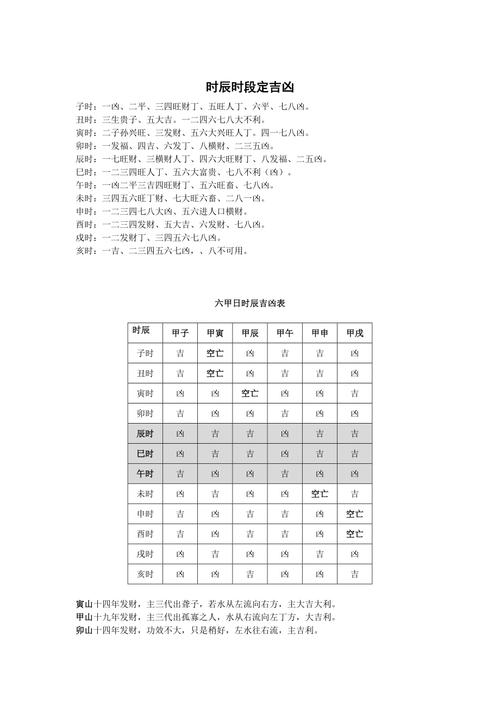 六十甲子日十二时辰吉凶表