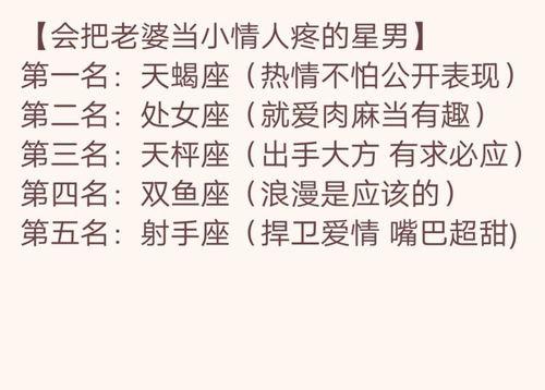 星座男怕老婆首先,让我们来看看哪些星座的男人害怕他们的妻子。研究发现,双鱼座、天秤座、摩羯座和处女座的男人更容易有这种恐惧。那么,这些星座的男人害怕什么,为什么害怕他们的妻子呢?