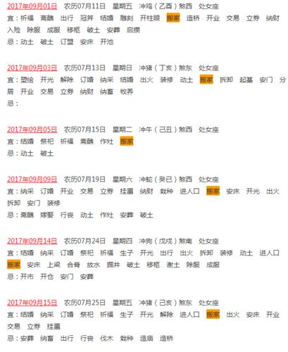 忌:搬家,开业,入宅,开工,安床,出行,安葬,上梁,开张,旅游,修坟,破土,祈福,祭祀,安香,开市,牧养,纳畜,启钻,移徙,伐木,经络,作梁,行丧,架马,造车器。