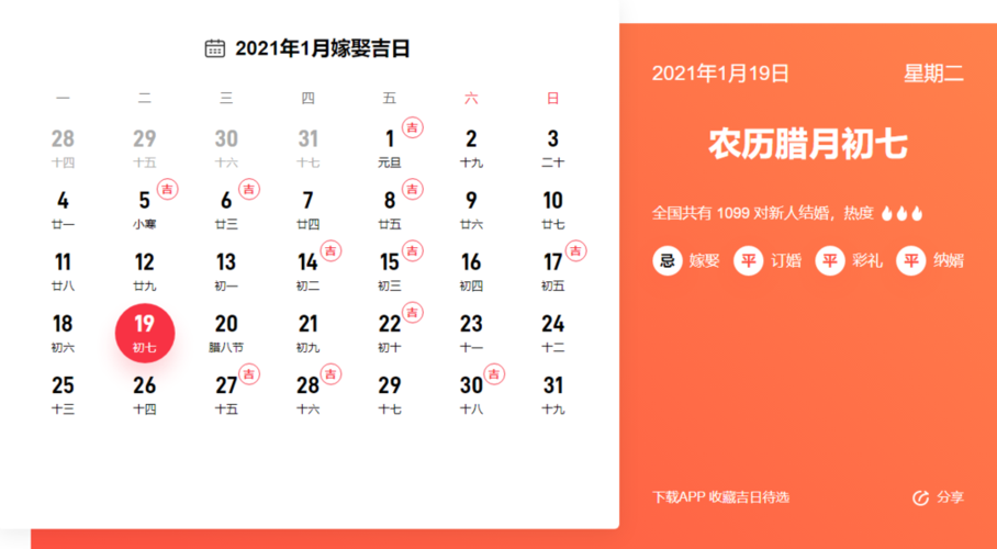 全年吉日最多的月份是8月,七夕在25号,一看就是火爆到不行的日子;