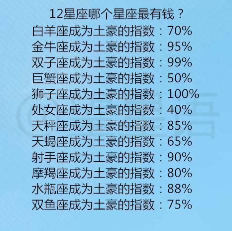 其它星座的财富状况除了天秤座和摩羯座,其他星座的财富状况也不同。