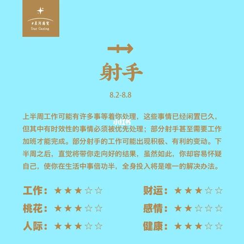 射手座的人际关系宫在双子座和天秤座,这部分说明了他们在与人接触中注重交流的感觉和公平和谐的原则,当然有些射手是极巨个性的,常常表现出自负清高的模样,但是只要他们碰见了聪明而有才华的人,也会摆出友好的姿态。今年木星对冲人际宫,意味着射手们的圈子进一步扩大了,他们可以人士到更多不同的人物,或者意味着射手们的名气范围有所扩展了,而需要注意的是上半年由于黑月还具有一定的影响,射手们并不是谁都接纳的,9月份后土星也会刑克人际宫,不要表现得过于狂放不羁或者顾虑太多。
