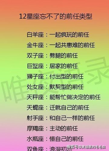 众所周知,每个星座都有自己的独特性。生活中不同的星座表明了一个人的先天性格和天赋。因此,它们都有自己独特的特点。以下是哪个星座不能忘记他们的前任。