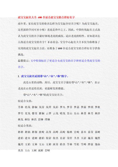 给孩子起名字,对于每个父母都是一件很重要的事情,因为这个名字将陪伴孩子一生。根据传统文化和现代社会需求,取名需要考虑多方面因素,同时起名也需要把握一定的技巧。本文将以“虎宝宝”为例,为大家如何给宝宝起个好名字。