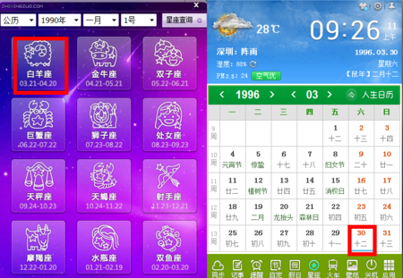 如图三,2020年阴历(农历)三月十二,是阳历(公历)2020年4月4日,是图四的白羊座(3月21日-4月19日)。