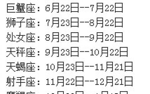 星座按阳历(公历)日期划分。首先,你必须知道你的阳历出生日期,然后比较以下信息。