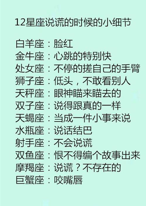 射手座:谎言是生活的一部分射手座的人倾向于漏嘴,无法忍受限制。他们喜欢探索新事物,通常无法忍受压抑。因此,他们经常编造谎言来逃避责任或扩大他们的生活空间。虽然射手座的谎言可能会让别人感到困惑和沮丧,但在他们看来,这些谎言只是生活的一部分,可以让他们更自由。