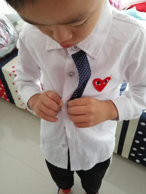 方法1。衣领下方的两个纽扣是空的。从第三个按钮开始,但不能面对按钮,而是一个错误的位置按钮,第四个按钮在第三个按钮上;第五个按钮在第四个按钮上,按钮后整理衣服,塞进裤子里。