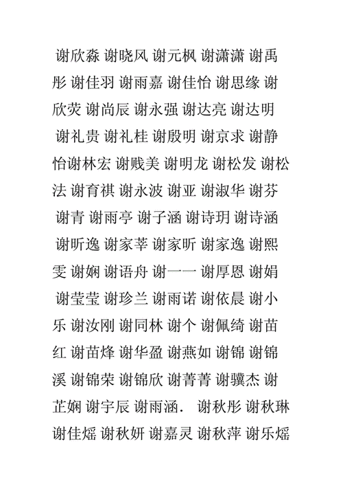 谢振轩〈谢霆锋的儿子哦〉、谢灵运<听起来不错>、谢岚〈简单〉、谢文胜〈通用版〉、谢谢佳宝(谐音家宝,福气)、谢金才(我亲戚的儿子)